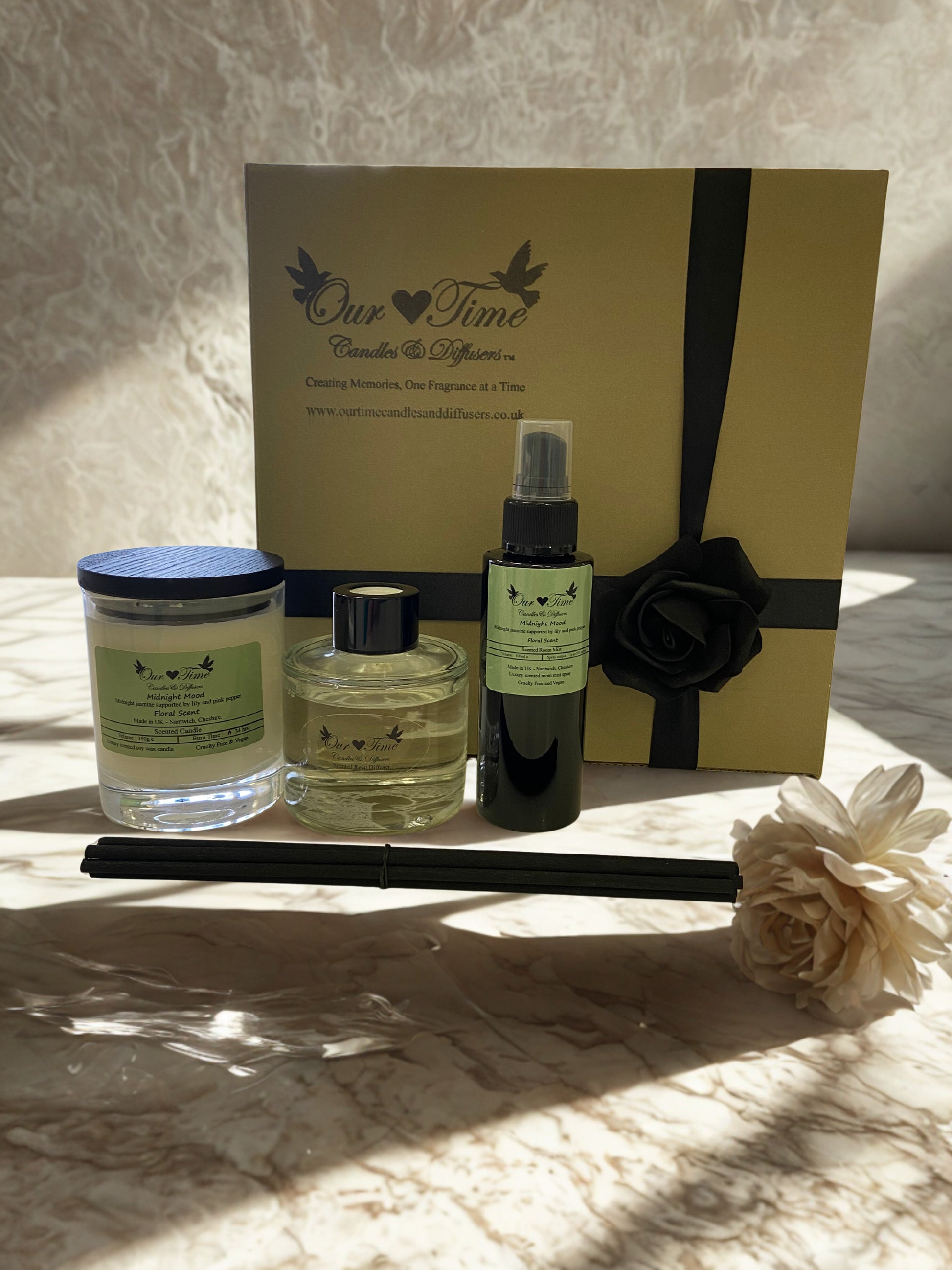 A medium candle, a 100ml reed diffuser and a 100ml room mist from 10 of our most popular scents. All you've got to do is decide which scent you want.