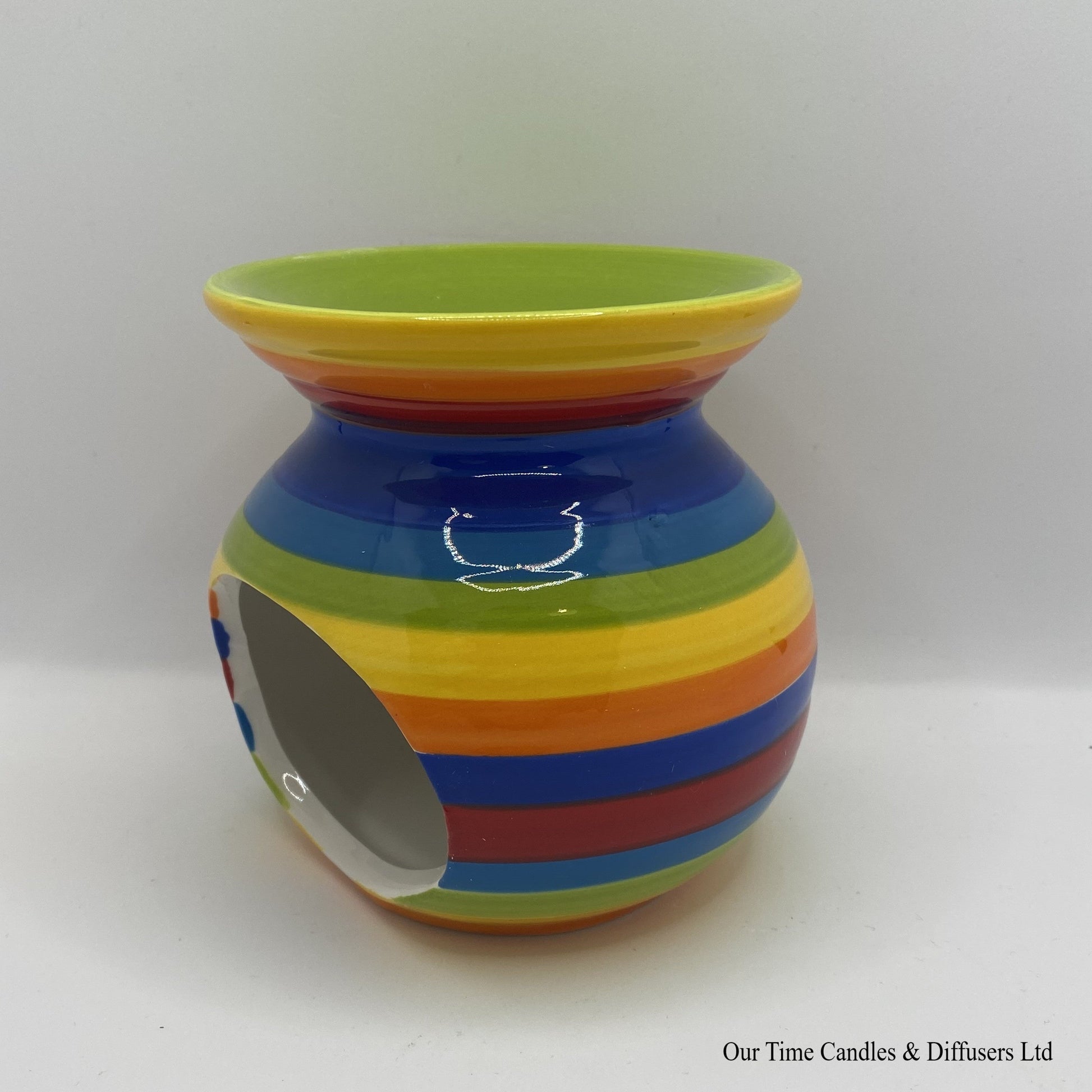 Made from ceramic, and decorated in a bright rainbow design, it comes with a generous melt bowl.